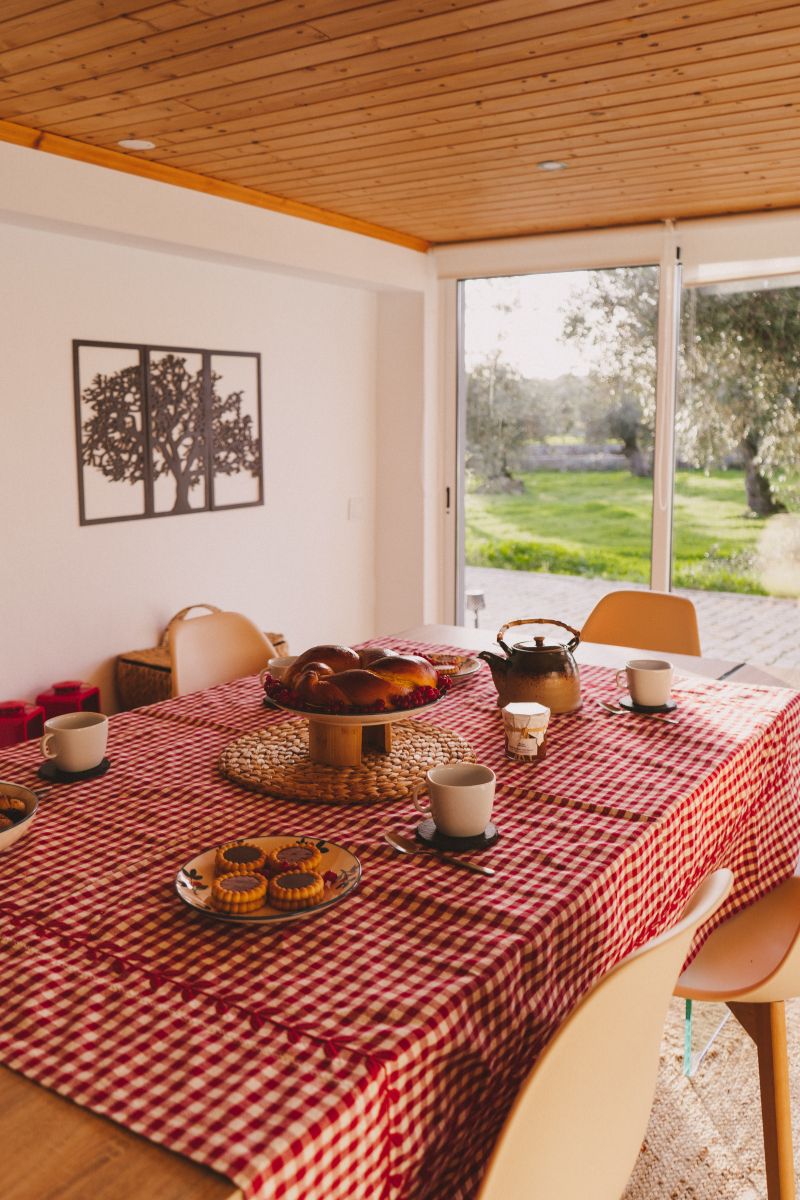 Um espaço luminoso e confortável, pensado para refeições tranquilas em família ou entre amigos. A mesa ampla, integrada na sala, convida a momentos de partilha, sempre com vista para o exterior e para a serenidade da Atalaia do Campo.